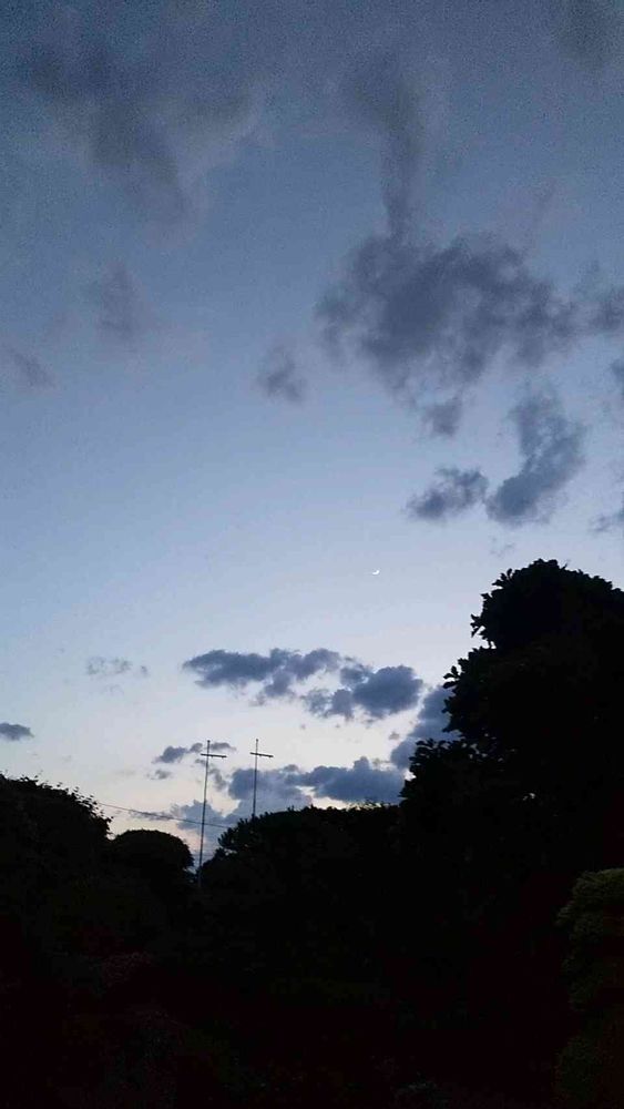 写真は、雨が上がった後の空。真ん中に小さく三日月。