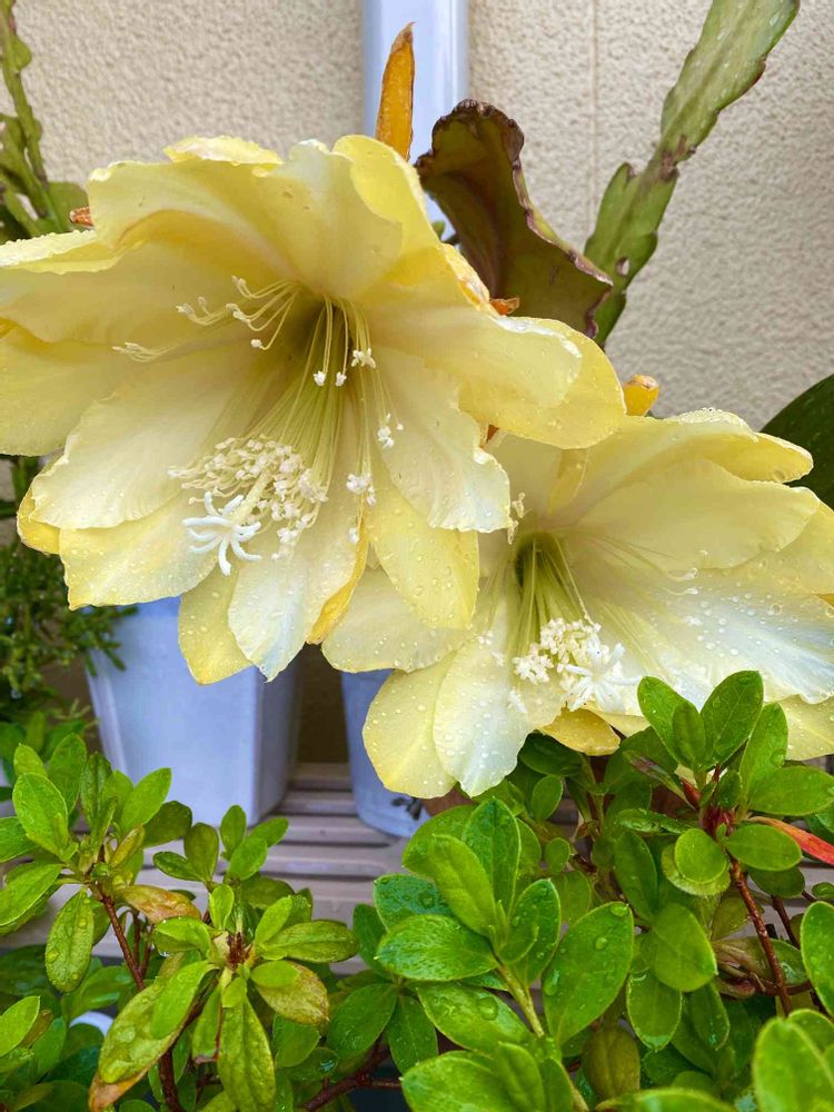 昨日から開き始めたクジャクサボテン無事咲きました🥰