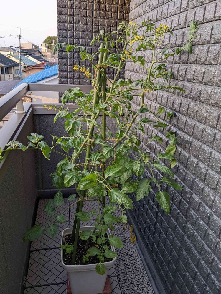 ミニトマトもちゃんと実がつき、ただし背はどんどん高く…もうモンスターやよ。