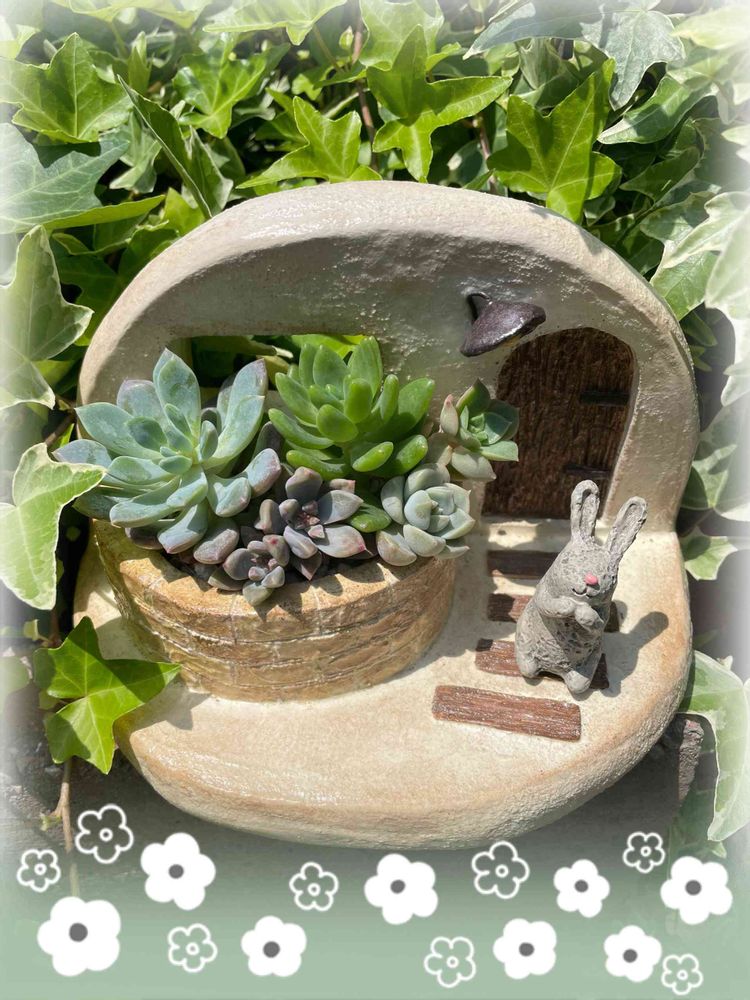 可愛い🐰さん💕モルタル鉢良いね〜😍