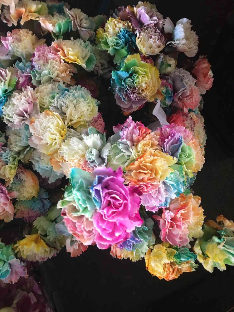 スプレーとかでの色つけでしょうか?レインボーカラーが鮮やかでロマンティック❤