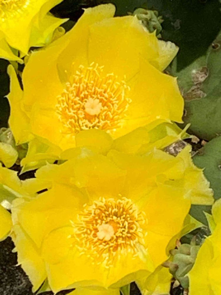 うちわサボテンの黄色い花が