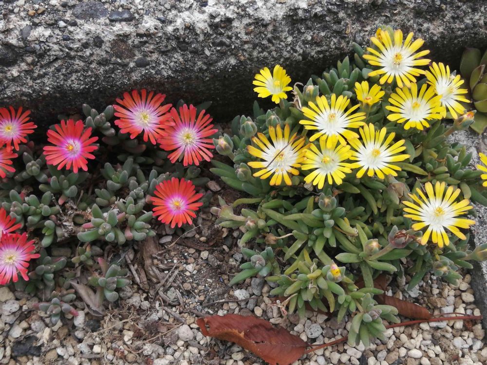 センペル畑の隣に、一昨年グランドカバー用のヌビゲナムを植えますた。(赤花のほう)、冬も無事に越せて、安定してきたので、今年は2つ植えてみますた。(黄色い花)