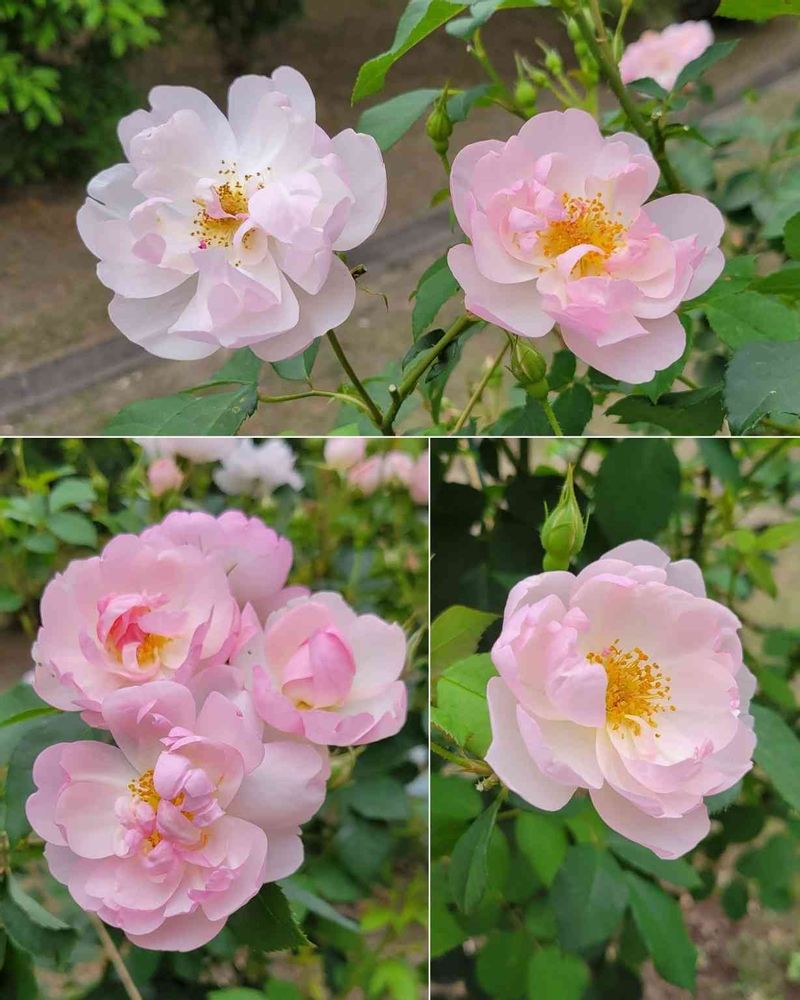 五岳の里公園、半八重咲きでペールピンクのバラが可愛いらしく咲いていました。