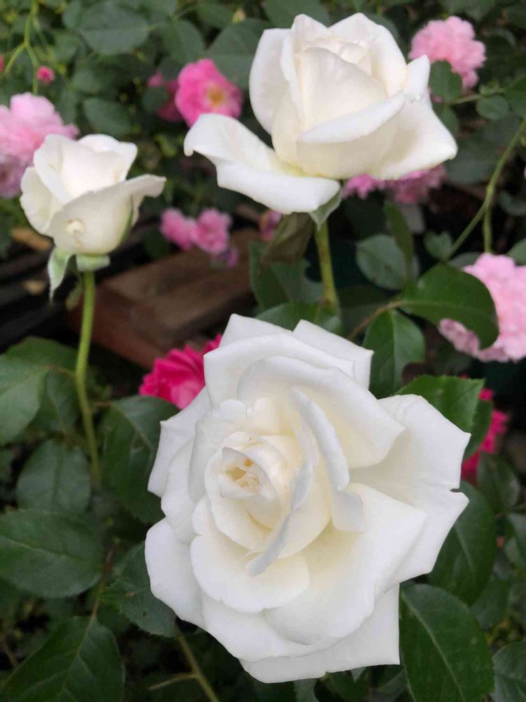 昨日、ラベンダーラッシー🌸の中で咲いてきた白バラ「ビブラマリエ」ちゃん発見😃😍