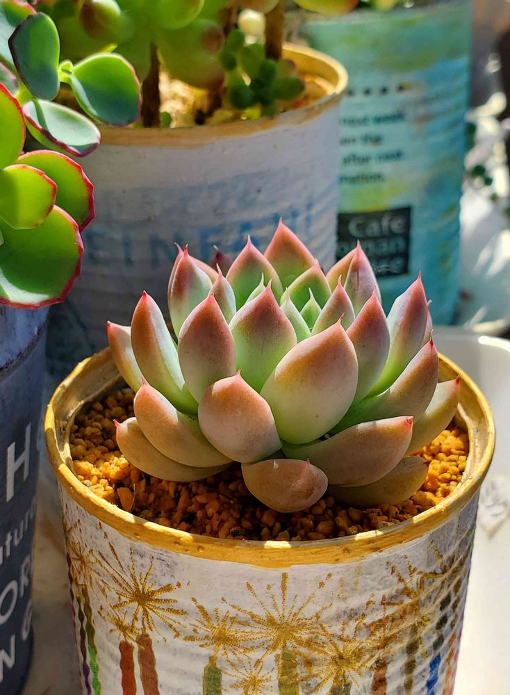 多肉5年生になりました(*´﹀`*) 狭いベランダでチマチマと🎶 癒しを求めてニヤニヤ眺めています•*¨*•.¸¸♬︎ 今年度中に引越しのため、どうやって運ぶか悩み中……🤔