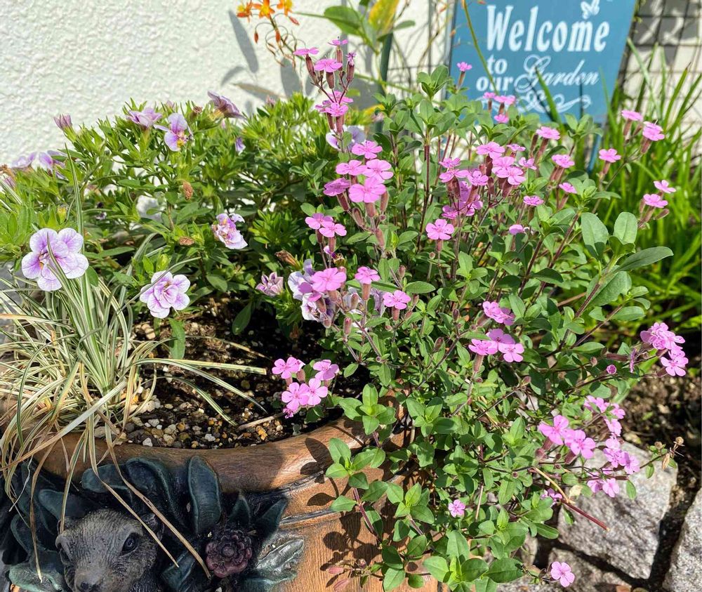 お花が少なくなってばっさり切り戻していたサポナリア オキモデスが再び花を咲かせています✨すごく可愛いです!カリブラコアグレープフリルとも好相性♡ビオラともあうしすごくコスパのいい子です〜♡