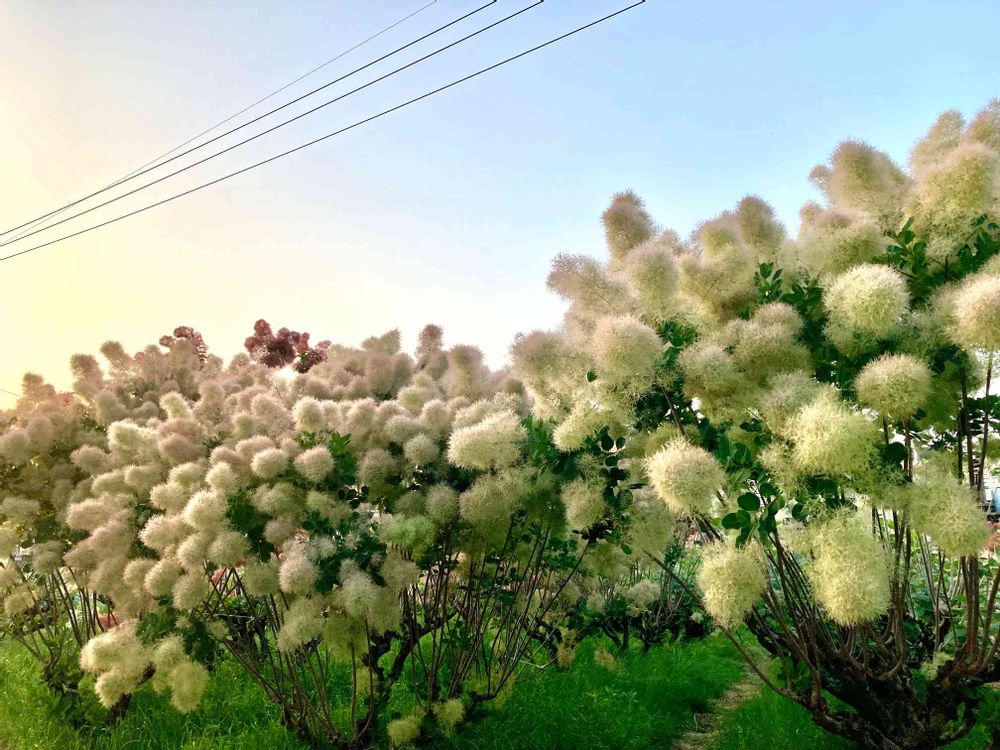 夕暮れ空の色が写り込んだスモークツリーも素敵です✨