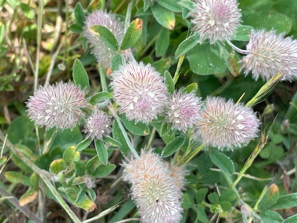このモフモフは小さな花の集まりですが、赤っぽい細いものは萼で、その周りに白い毛が生えているそうです。