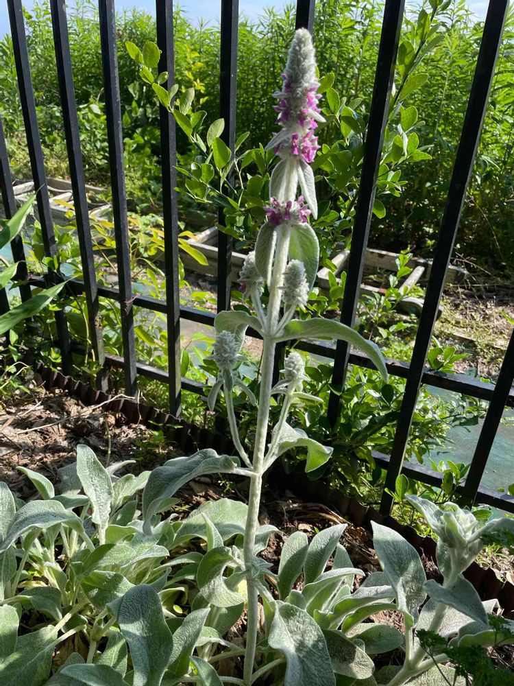 小さな苗から育てて2年目、冬越しも出来て、ラムズイヤーさんが咲いてくれました‼️やった〜😂