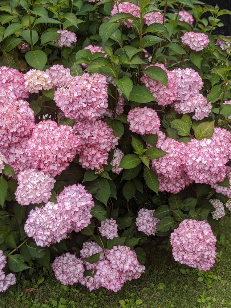 あじさいの季節になりましたがバラと一緒に満開になっていました❣️うまく剪定できなくて花の重さで下の方に花が溜まっています😅