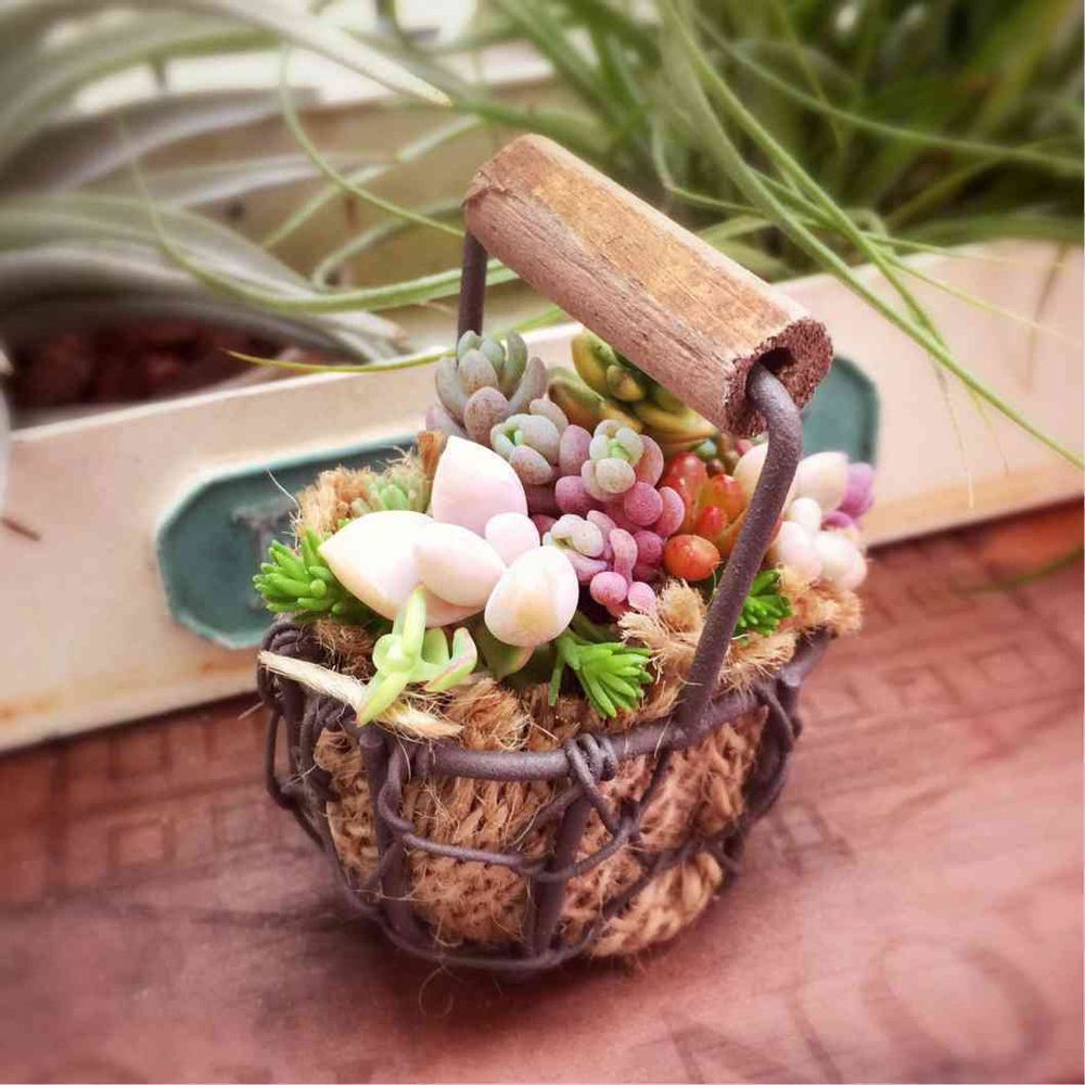 ミニ多肉をミニ網かごに寄せ植えその2