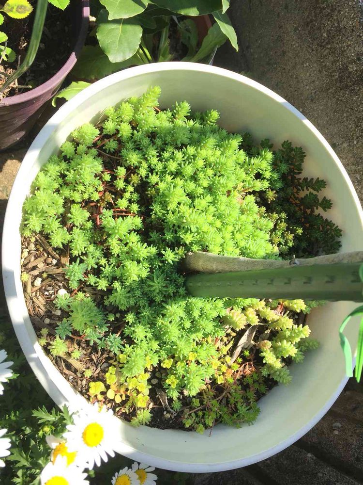 ほんと、雑草まわりに生えてると影響大だもんね〜うちも何年か前は除草剤まくときにそちらもまかせてくださいってまいてた笑笑 わすかな土のエリアでも草はね...セダムは何種類もあるから名前の特定も難しいかも〜?