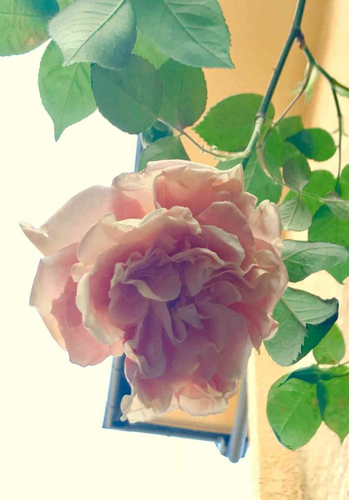 見上げるとつるバラのロイヤルサンセットが私を見下ろしていました❣️