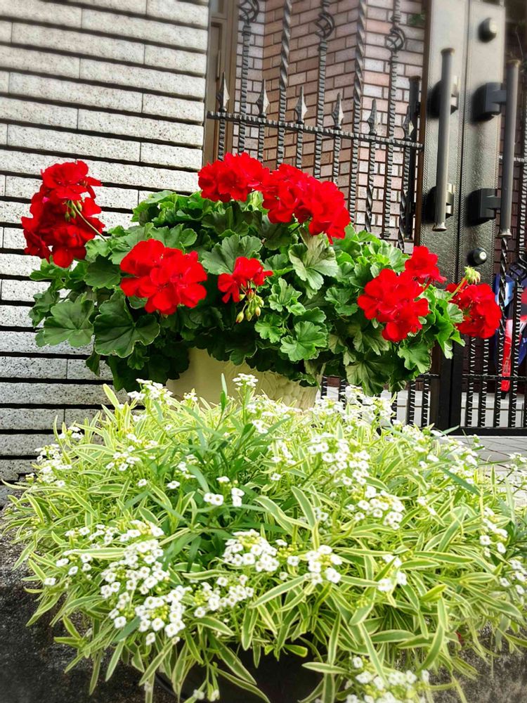 玄関,スーパーアリッサム・フロスティナイト,ゼラニウムカリオペダークレッドの投稿画像