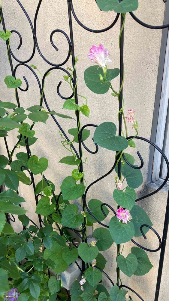 朝顔スプリットペタルがトレリスを登って咲いて💕