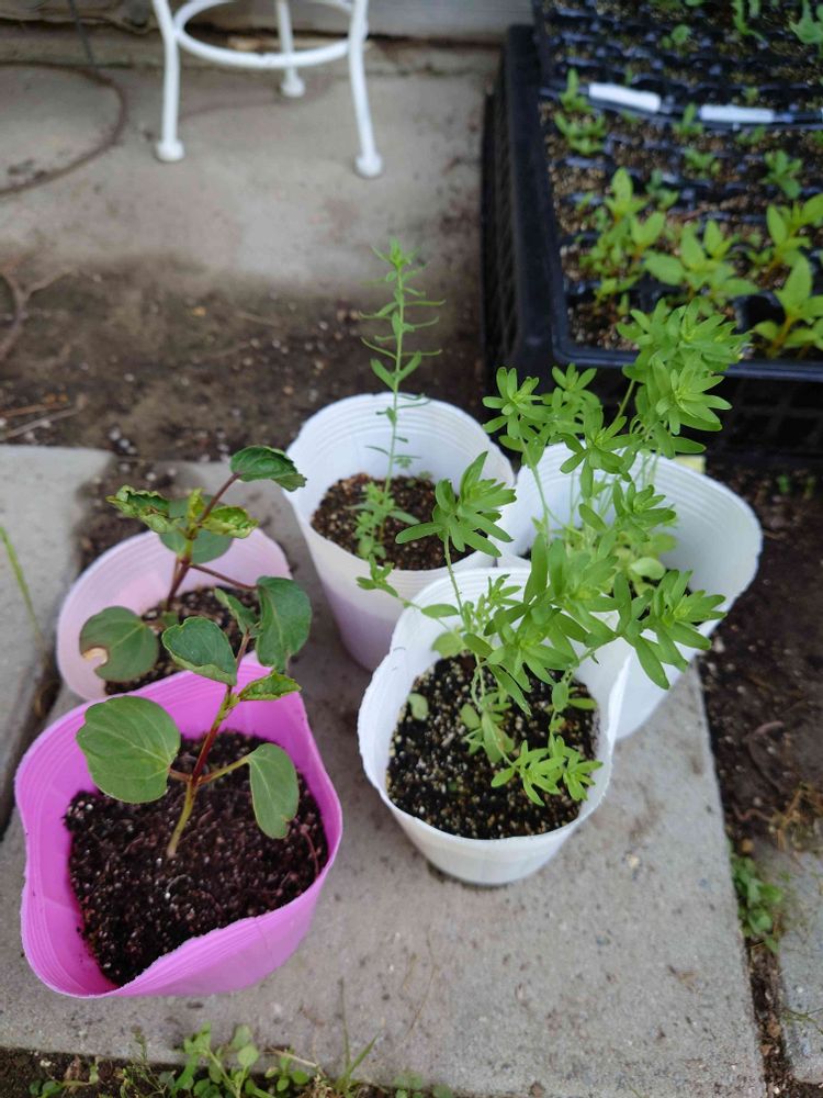 去年、秋遅くに花終わりの苗をてにいれて種を取って蒔いたローゼル(2種類)今からきちんと育ってくれるかな。ハイビスカスティー(ローゼル)作りたい!