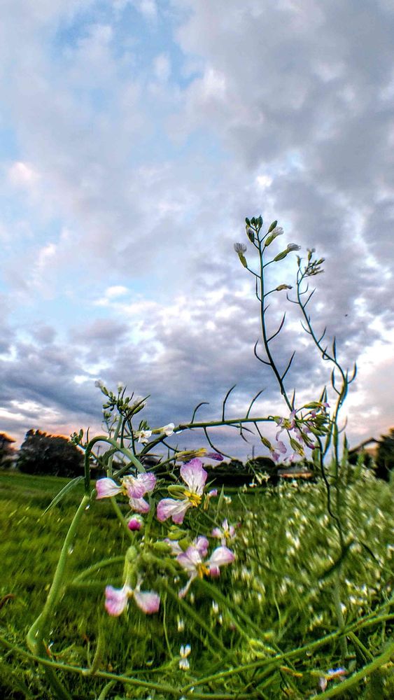 昨日の夕景、大根の花です。