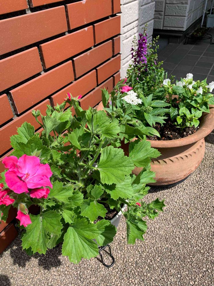 並んで咲いてます😌蕾がたくさん❣️寄せ植えも少しづつ盛り上がってきました♪特にアンゲロニアの今後に期待してます。アンゲロニアが西日弱いらしいので、一番高い苗だから、そこに合わせてみてます🙄