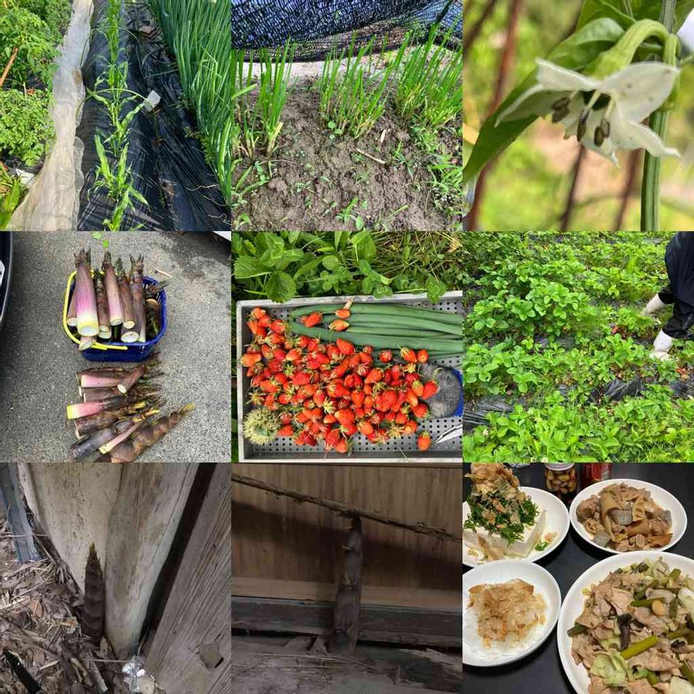 まだ タケノコさん頑張っているのですね、👍 九条ねぎもいい香りで 苺もいっぱい 何でも上手にできてますね😄熱中症にならない様に草取り頑張ってください。😊