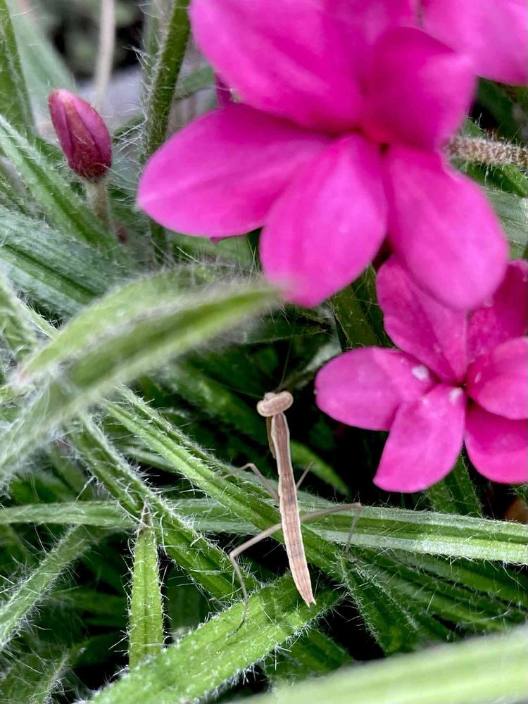 Rhodohypoxis baurii アッツザクラの中にカマキリ👶