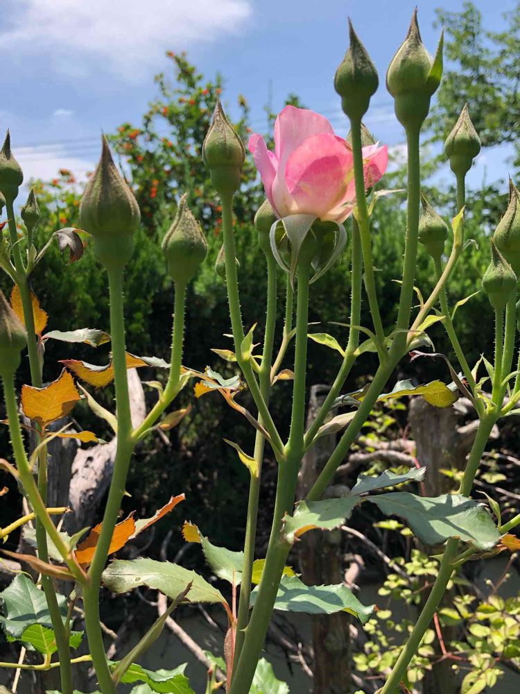 今年はどのバラも調子が悪く蕾をつけても開かなかったり、カビたりする中元気に2番花の蕾をつけ始めたライラックビューティー🌹頑張って咲いてね🥹