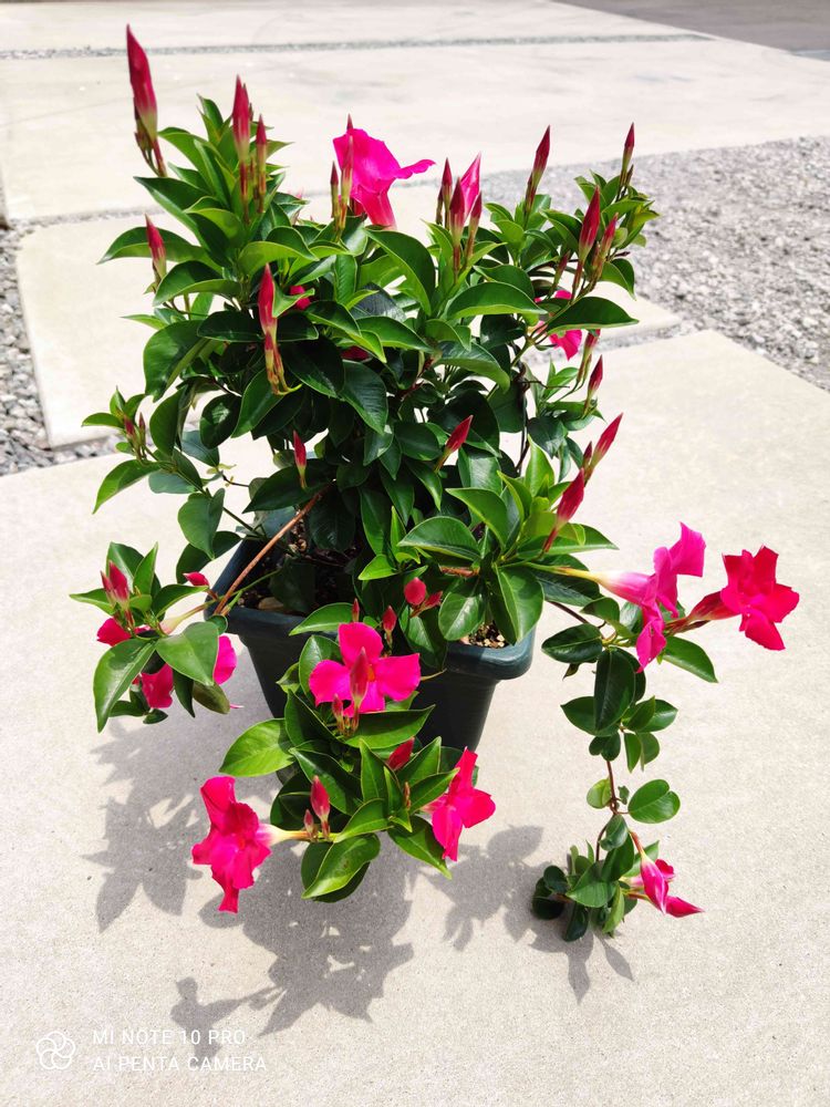 マンデビラめちゃ花が咲いて長いこと咲くのがいいところです🏵ハイビスカスは1日で終わっちゃうのに(゚A゚;)ゴクリ