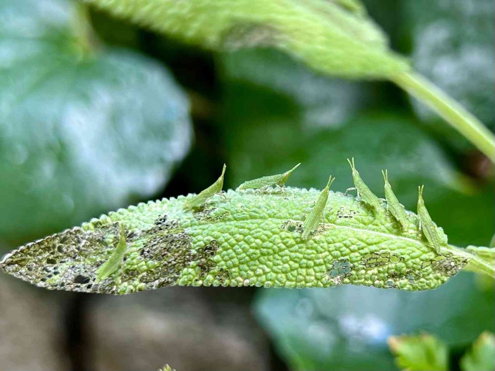 葉っぱを食べるバッタちゃん、を狙ってる蜂さんがうろうろと〰️🐝✨