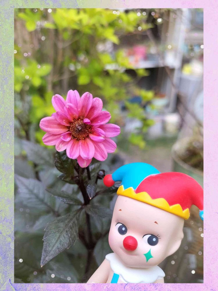 葉っぱは渋いくて黒いのに、お花は小振りでビビッドなピンク💖