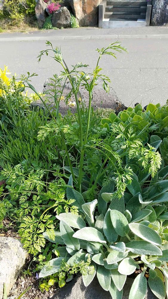 お庭の一番お気に入りの場所、ラムズイヤーとラベンダーの間にこぼれ種のオルラヤ♡いい場所に咲いてくれそうで楽しみ!
