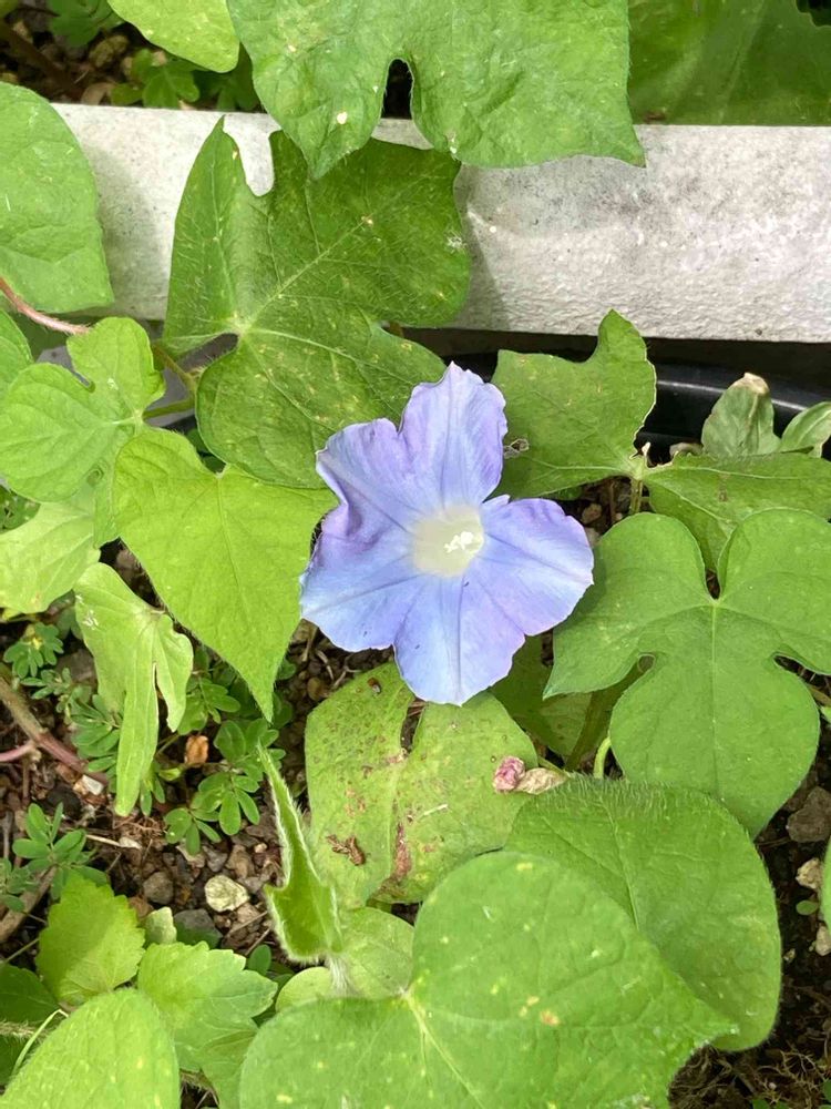 今年はツルが巻きつく前にお花が咲いています。こぼれ種は強いですね😆