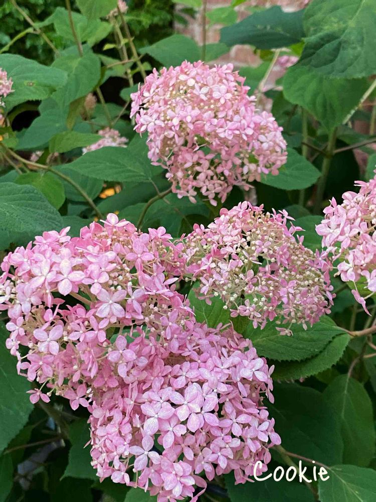 ピンクアナベル沢山咲いています😊❣️ところが今年剪定を怠った為に手乗りサイズなんです😆💦