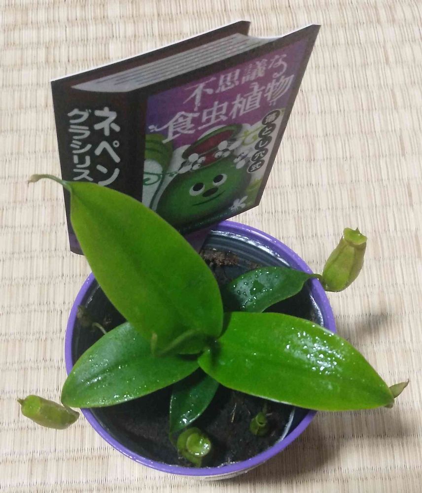 久々に行くショッピングモールのお花屋さんで、たくさんの食虫植物を発見!その中に、小さな可愛らしいネペンテスが😳