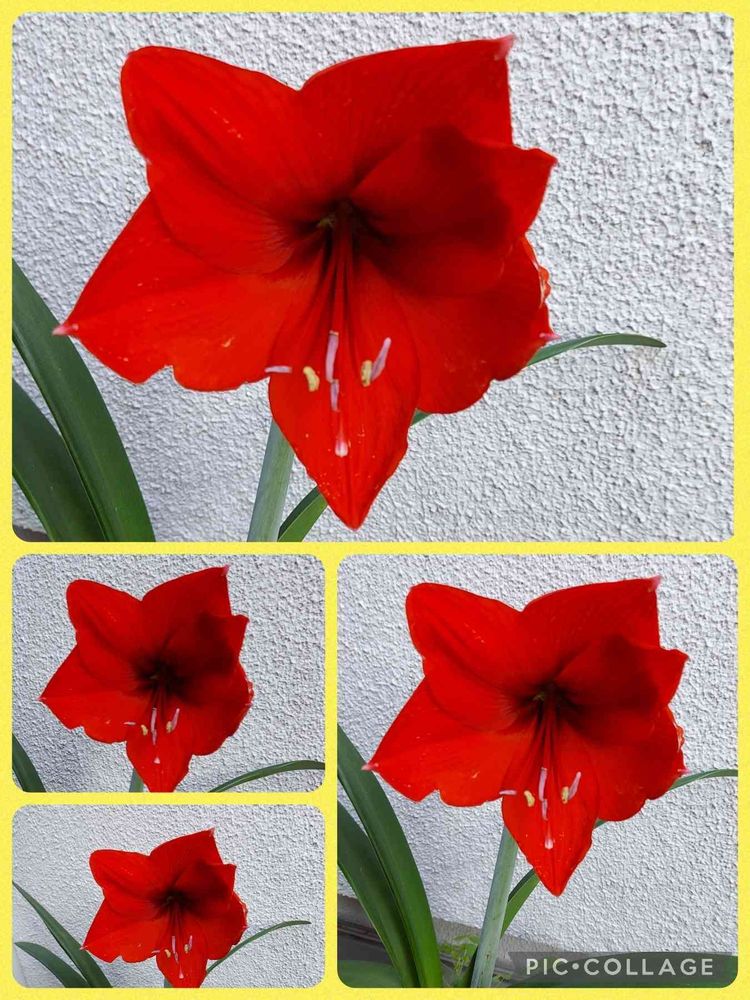 『アマリリス』の一輪に枝がぶつかり落としてしまい1輪だけが咲いています。我が家に来てから20年以上ですね。株分けしてから6年以上経ちます。2鉢共 毎年咲いてくれています。