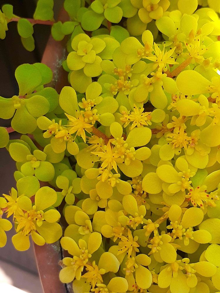 最近黄色💛が益々綺麗になって 星の様なお花が沢山咲き鉢の中は