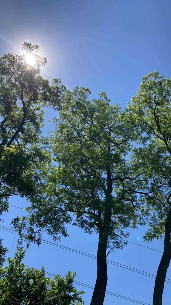 長い冬の間はずっと枝ばかりだった木々も、気がつけば、、日陰をもたらすほど葉で覆われました。いいお天気の土曜日です。