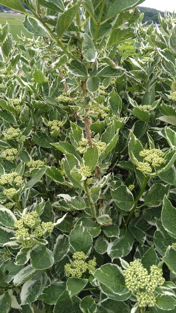 斑入りのアジサイつぼみいっぱいです🤗