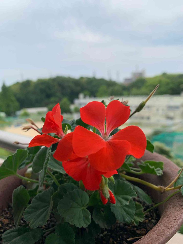 バルコニー/ベランダ,ゼラニウム,朱色の花の投稿画像