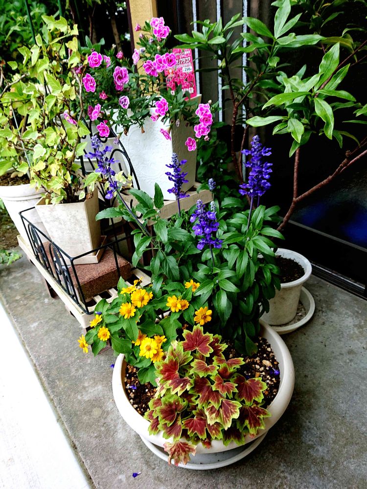 HCにてラベンダーを購入したけど それだけだと淋しい気もしたので寄せ植え3種盛りにしました❗