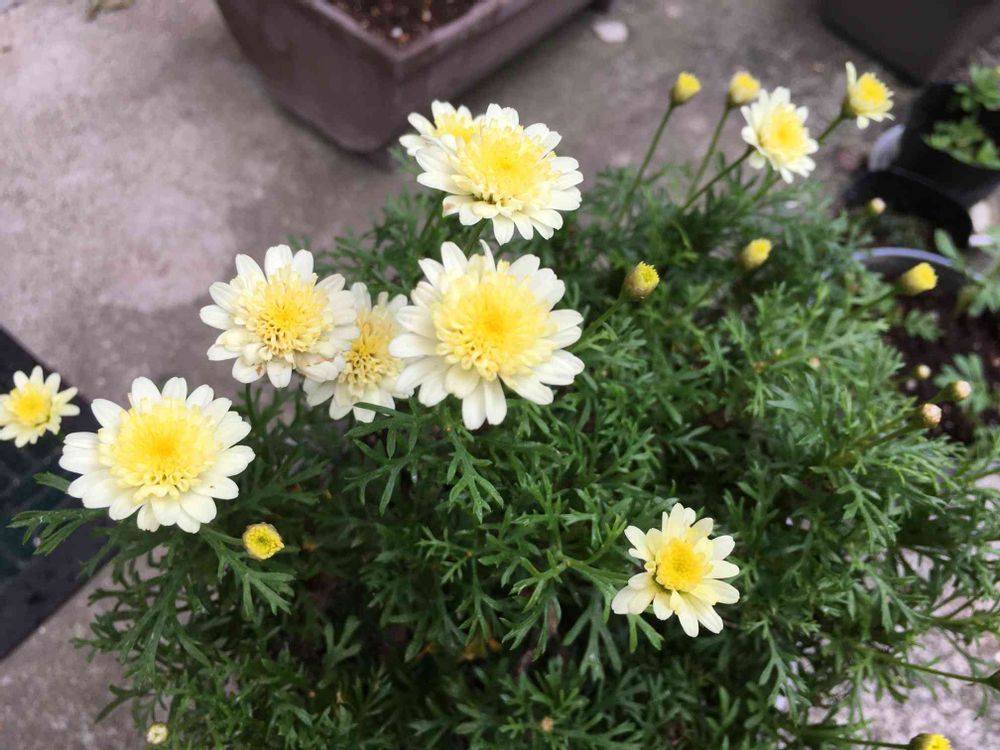 バッサリと切り戻したボンザマーガレットさんがポツポツとまたお花を咲かせています💕💕