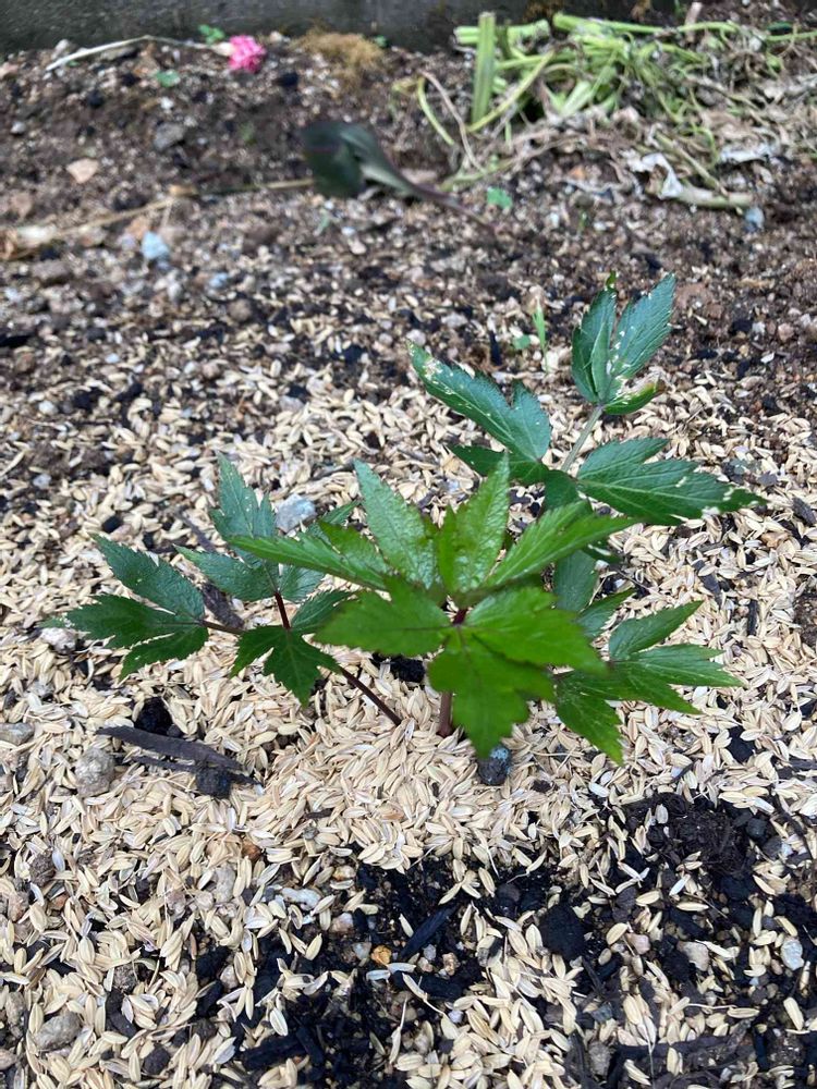 大和当帰が少し大きくなってきた。大和当帰で軟膏を作るのが目的。葉っぱも天麩羅に出来るらしくとても楽しみ♬