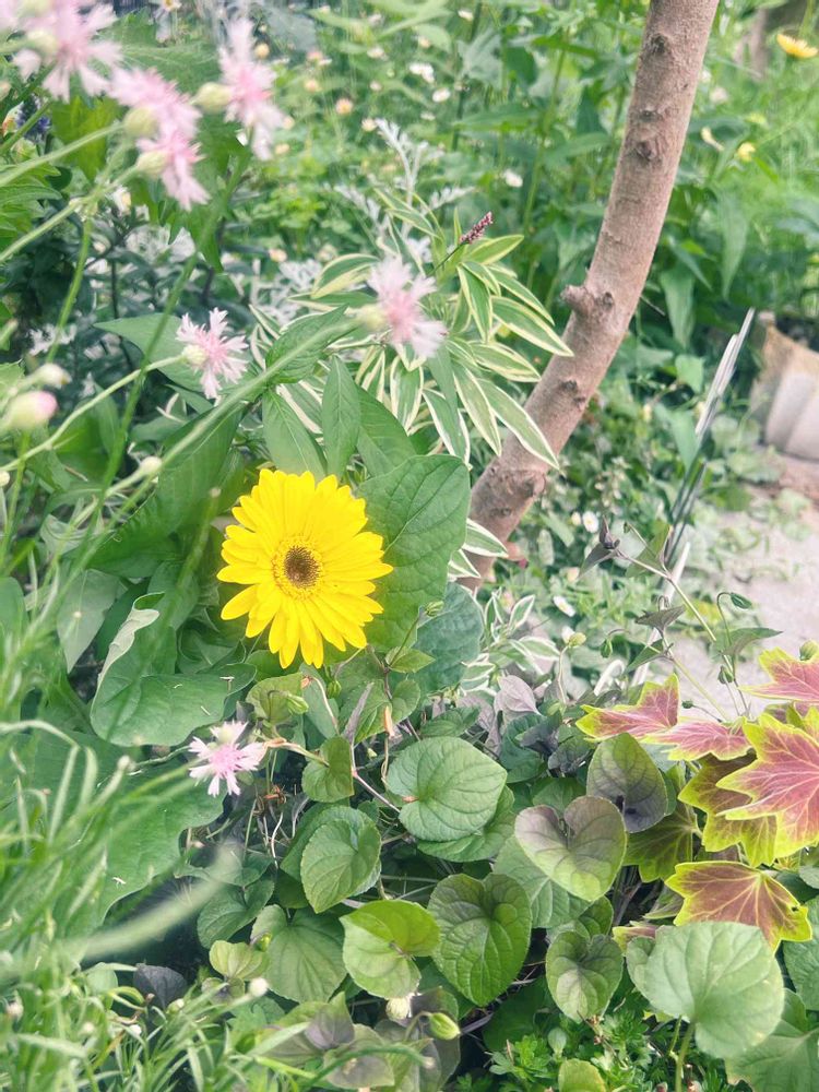 元気がなくなり、ごちゃごちゃ花壇に移植したガザニアが返り咲いてくれました💛