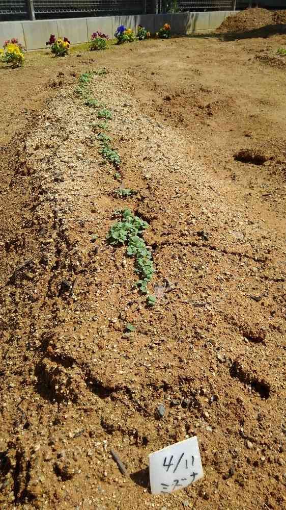 職場のミズナの種をまいて、芽が出たけど、土が割れた😭