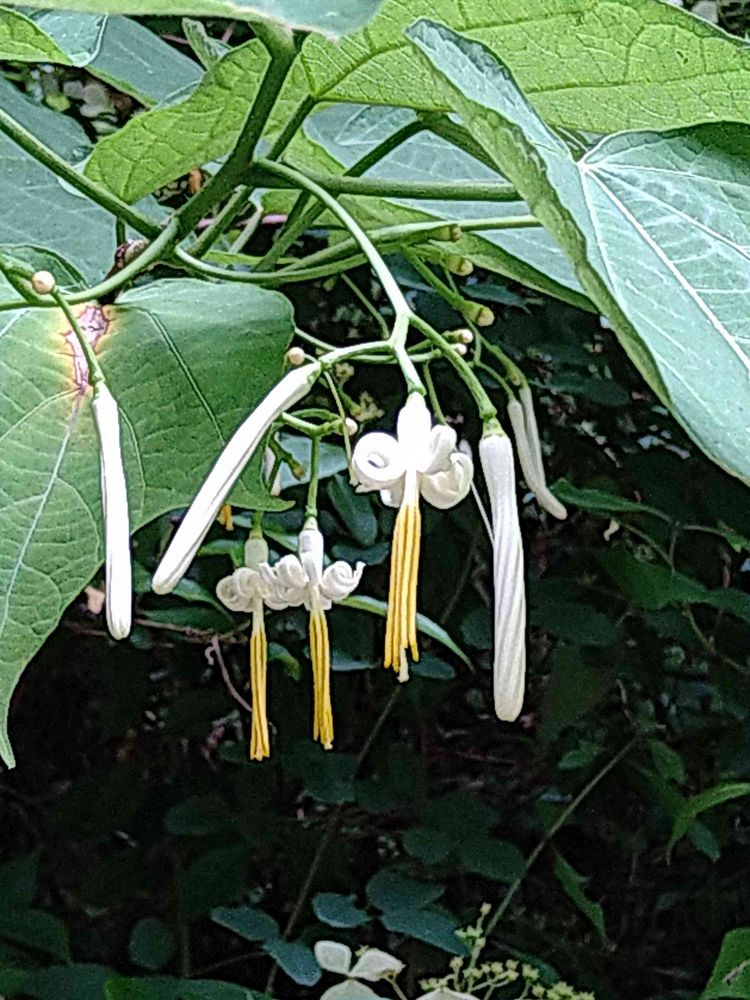 日本には一属二種のみ。和名は文字通り瓜の葉に似てるから、学名を見たら「プラタナスの葉(に似た)」と。なるほど・・・花の垂れさがる様は舞妓はんの髪飾り?