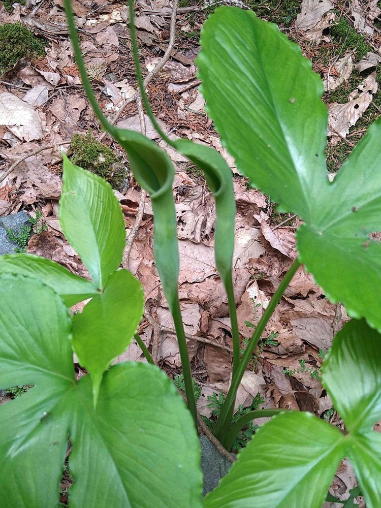 畑の雑草ならばカラスビシャクだが、ヒノキ林の下草の大型種は迫力満点