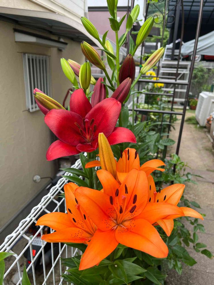 去年はオレンジと入れ替わりで赤が咲いたのですが今年は同時に咲いてくれたのでゴージャスです✨✨ピオニー庭の叶姉妹でございます🤣