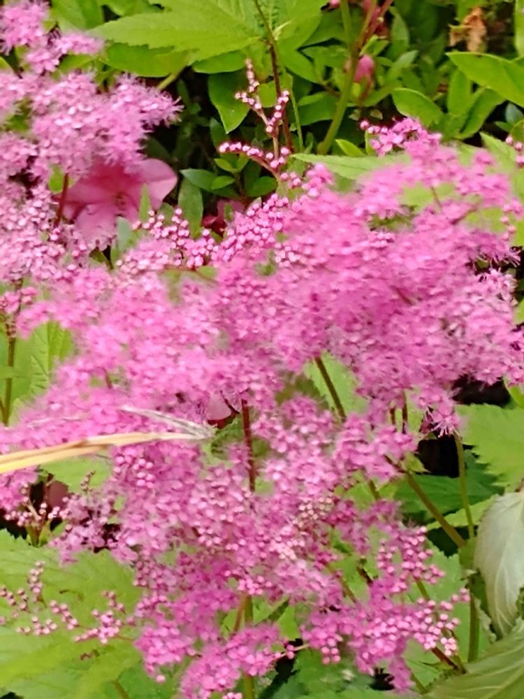 シモツケソウと似ていて、見分けが難しくて〜 ピンクか濃いめなのが園芸種の、京鹿の子らしい💗