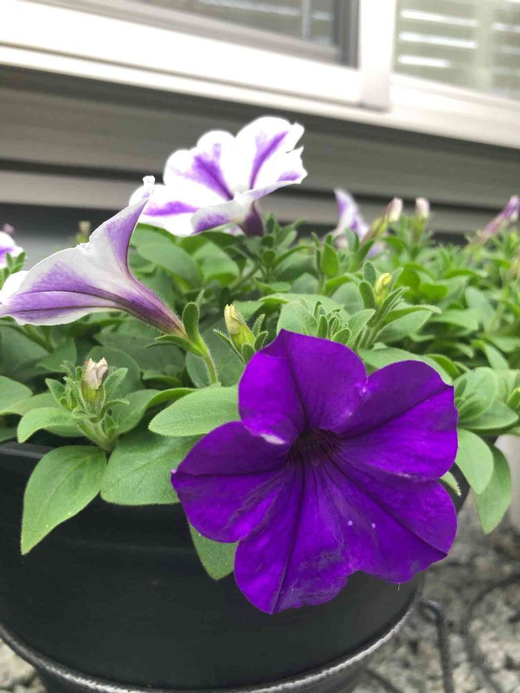るり色風ぐるまに、もとの品種になった色なのかな?紫のみのお花が咲いていて、こういうこともあるんだなー😳っと軒下移動後観察してました😅