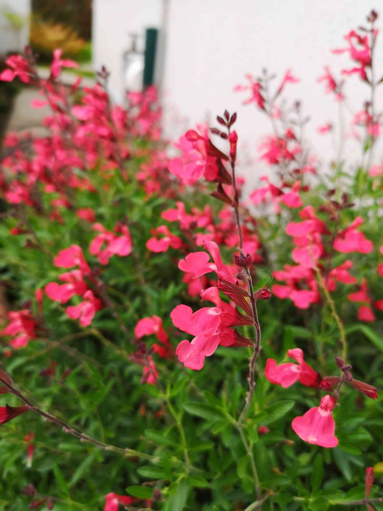 庭へ続く小道と、シンボルツリーの後ろの2ヶ所で長いこと咲いてくれていたチェリーセージ。