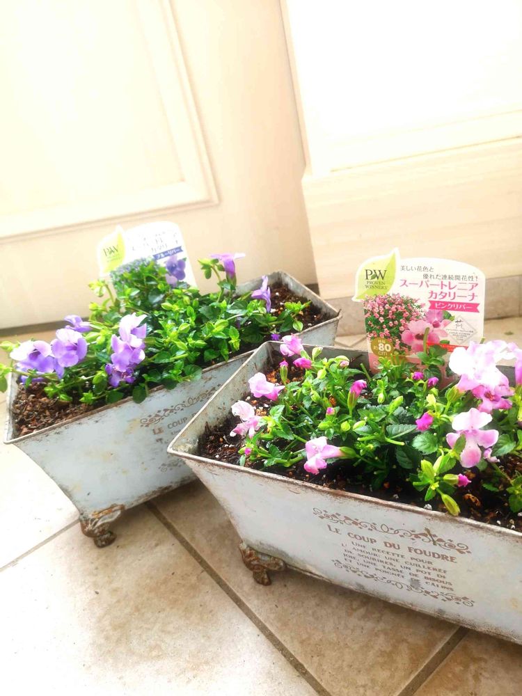 楽しみです🥰ブルーはハンギングのカゴにしました💕ピンクはどうしようかなぁ🤔